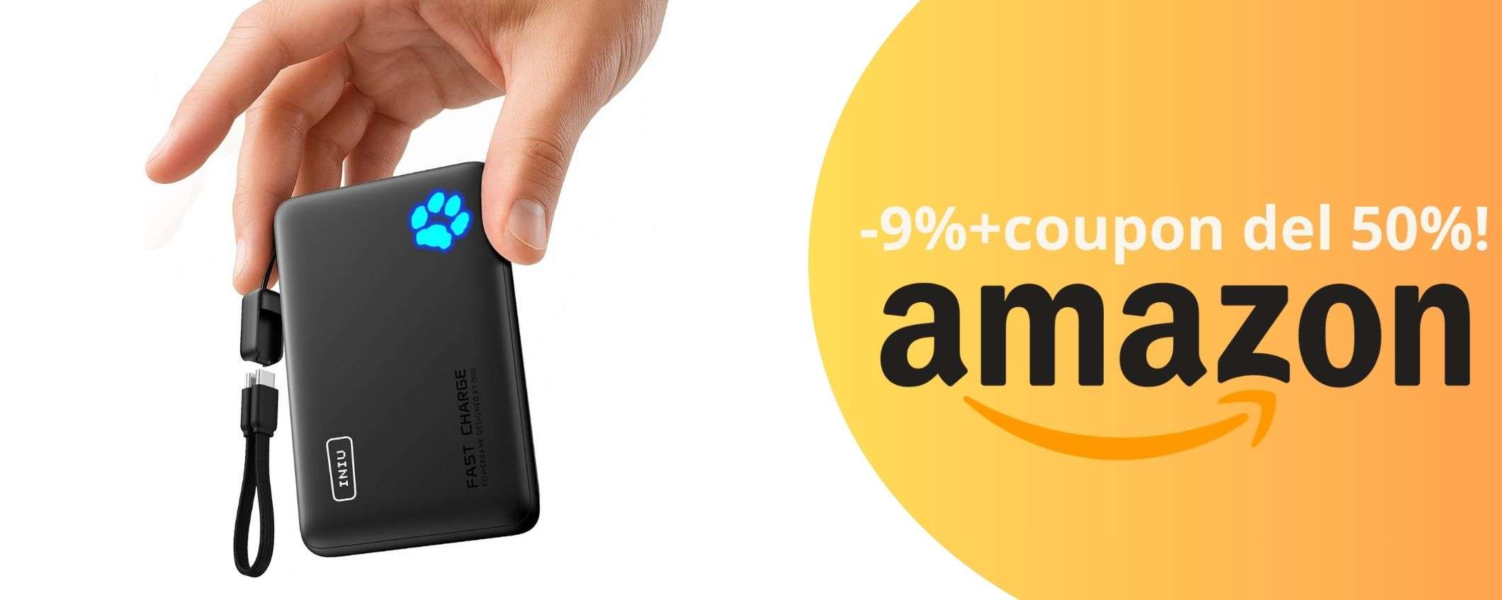 Insomma, si tratta dell’alleato ideale per chi ha bisogno di rapidità, sicurezza e di un power bank davvero leggero e compatto. Non lasciartelo scappare ad un prezzo imbattibile e acquistalo subito su Amazon: al momento lo trovi scontato del 9% e alla promozione potrai aggiungere un ulteriore coupon del 50% al momento dell’acquisto! Non perderti quest’offerta irripetibile e fallo arrivare subito a casa tua!