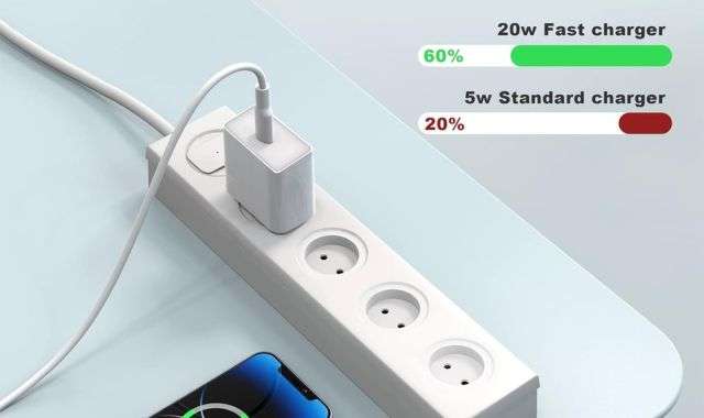 Con questo accessorio puoi ridurre il tempo di ricarica del tuo iPhone a soli 30 minuti per raggiungere il 50% della carica, rispetto al caricatore originale da 5W. Questo caricabatterie rapido è la risposta alle tue esigenze di produttività, permettendoti di essere sempre in movimento e con il tuo dispositivo pronto all’uso.