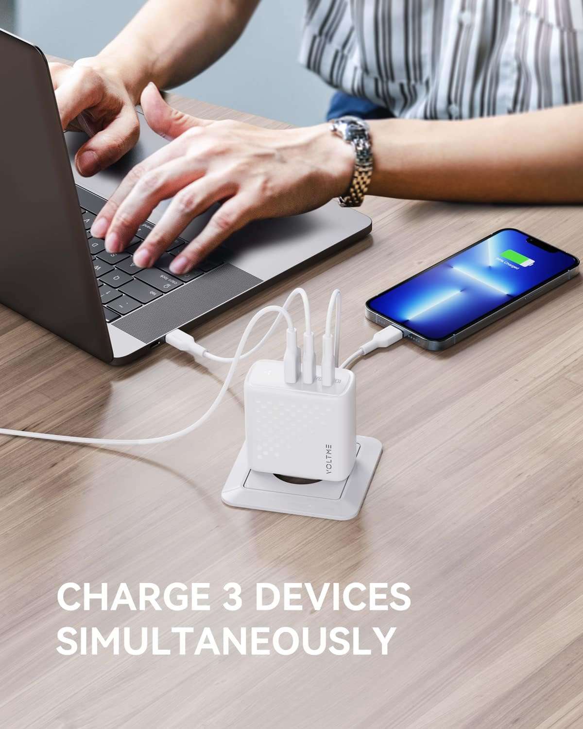 Oltre al rapporto qualità prezzo decisamente vantaggioso con questo caricatore USB potrai ridare energia ai tuoi dispositivi in modo incredibilmente veloce. Infatti grazie alla sua potenza da 100 W puoi ricaricare ad esempio un iPhone 14 completamente in circa un’ora. E grazie alle sue 3 uscite avrai la possibilità di ricaricare fino a 3 dispositivi contemporaneamente.