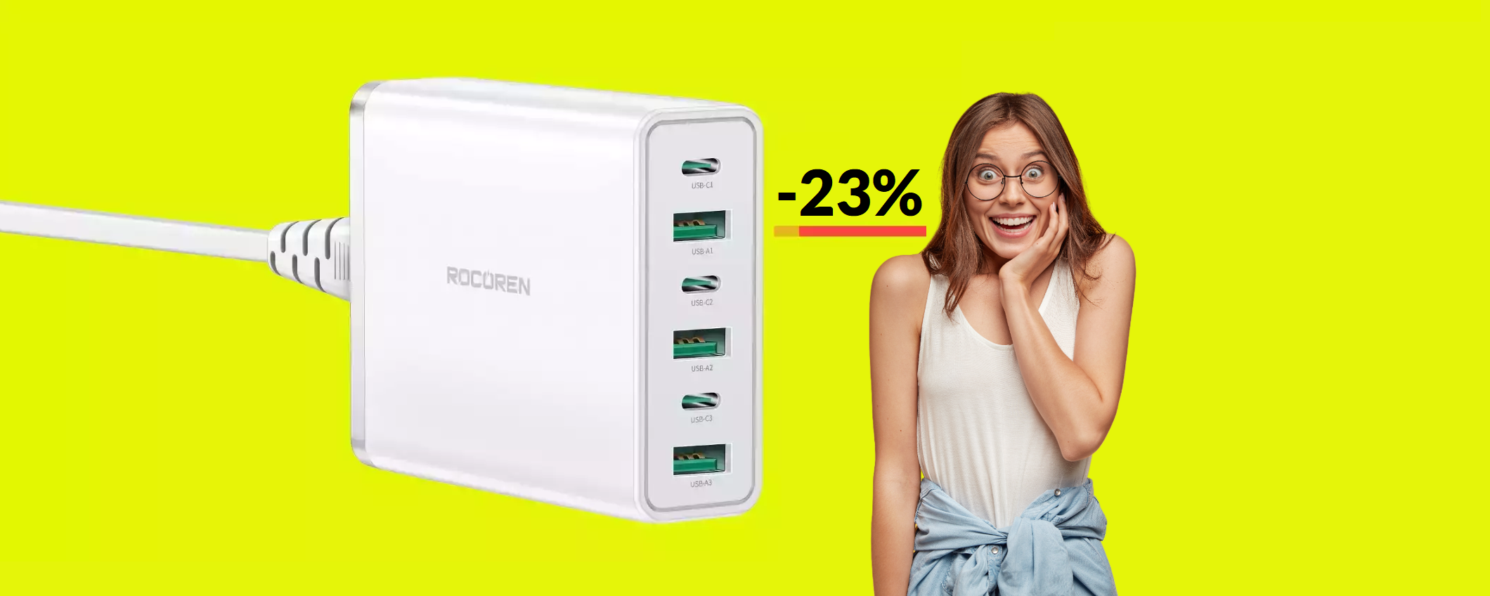 Con le scorte ormai limitate, ti conviene fare in fretta e mettere nel carrello il caricatore USB C 6-in-1 di Rocoren ad un prezzo davvero stracciato: lo riceverai comodamente a casa tua nel giro di pochissimi giorni.