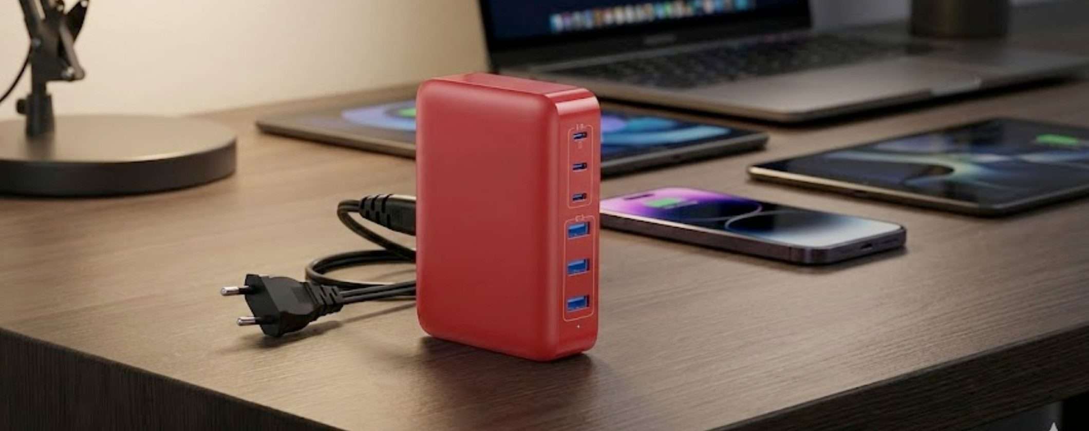 Il design compatto e la colorazione rossa rendono questo caricatore un accessorio ideale sia per l’ufficio che per i viaggi, trovando facilmente spazio in borsa o in tasca. Grazie alla compatibilità universale, è possibile collegare contemporaneamente smartphone di ogni marca, iPad, AirPods, console portatili come Steam Deck e Nintendo Switch, oltre a smartwatch e cuffie. L’integrazione degli standard Power Delivery e Quick Charge assicura che ogni dispositivo riceva l’energia necessaria in modo intelligente, riducendo drasticamente i tempi di attesa.