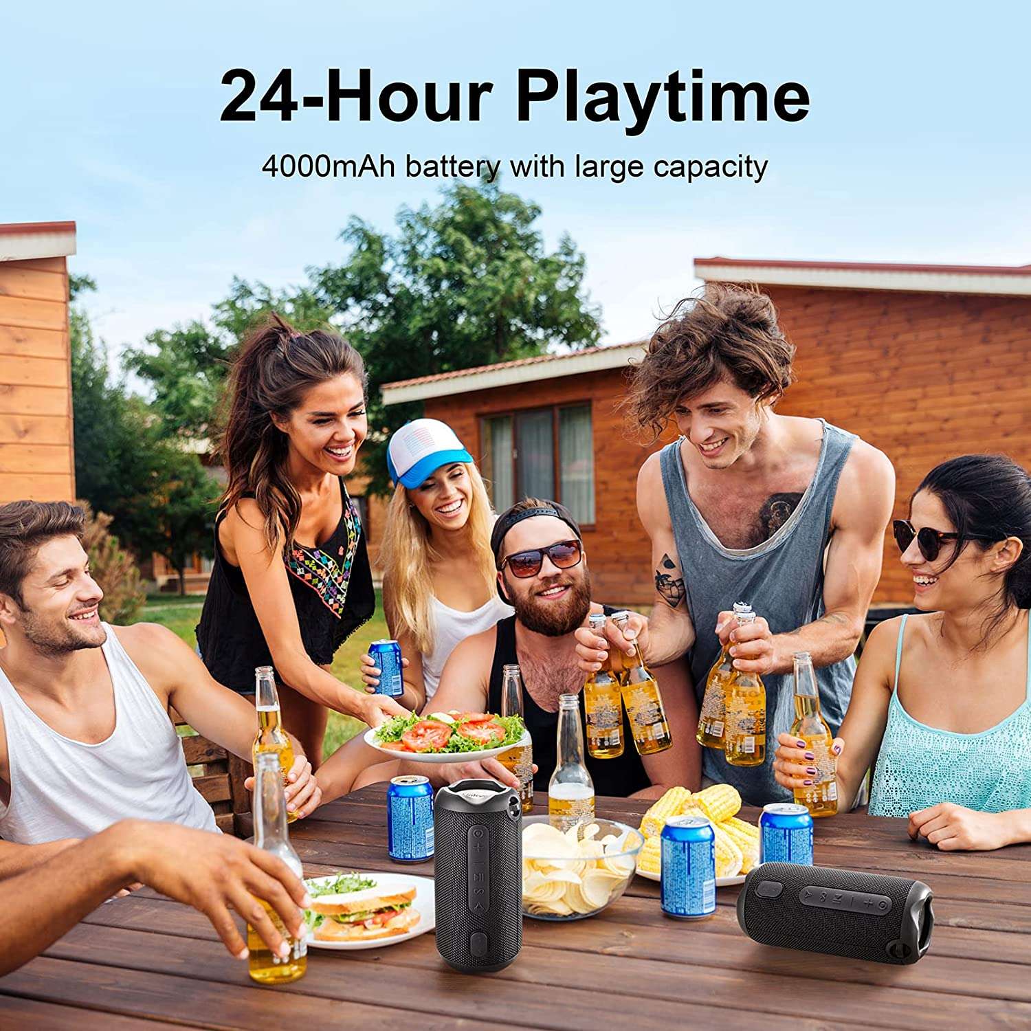 Grazie ai suoi doppi driver e alla potenza da 24 W regala un audio a 360° forte e preciso, senza distorsioni. La tecnologia Bluetooth 5.2 offre una connessione stabile e senza latenza. Si collega velocemente al tuo dispositivo e una volta associato lo riconosce in automatico quando lo accendi. E poi ha una mega batteria in grado di durare per ben 24 ore con una sola ricarica.