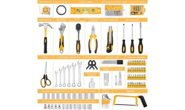 Cosa troverai al suo interno? Pinze, chiavi esagonali, chiavi a bussola, cacciaviti di precisione, livella, seghetto, martello e molto altro con ogni strumento che è stato pensato per garantirti il massimo del comfort e controllo, con impugnature antiscivolo che offrono una presa salda e sicura.
