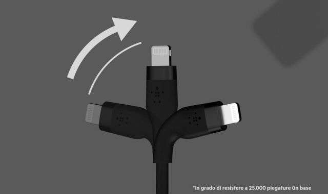 Prima di tutto, la resistenza di questo cavo è fuori dal comune. È stato collaudato per resistere a oltre 25000 cicli di piegature e a più di 10000 collegamenti. Ciò significa che puoi essere certo che il cavo USB-C a Lightning di Belkin ti accompagnerà a lungo, senza dover preoccuparti di sostituirlo frequentemente.