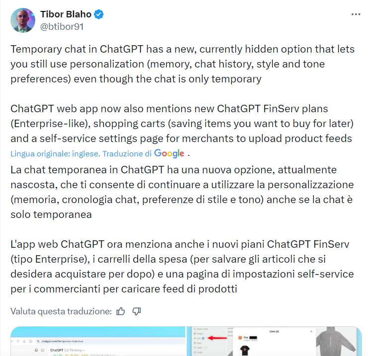 Al momento la nuova funzionalità non è stata ufficializzata da OpenAI e non è chiaro se è disponibile per tutti gli utenti o se si tratta di un test a campione.