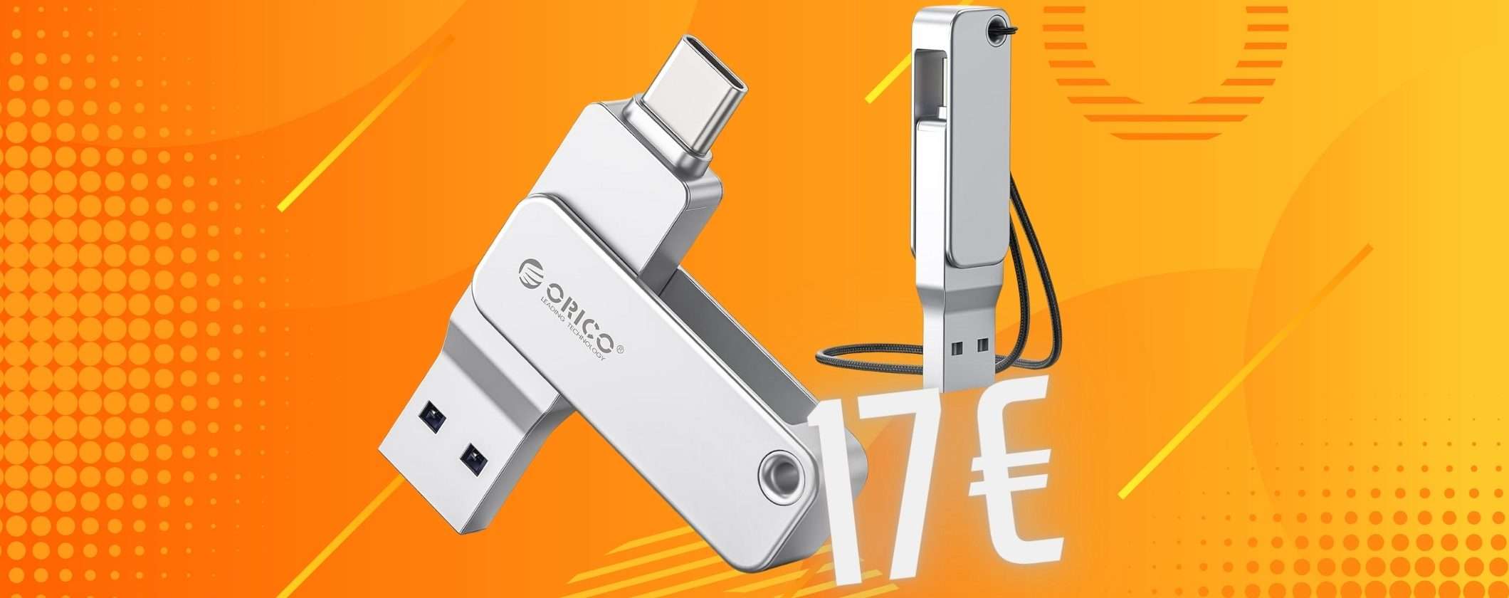 Se devi trasferire file dallo smartphone al PC e viceversa il modo più veloce è sicuramente avere una pendrive con doppio connettore e oggi ti segnalo questa promozione eccezionale. Se vai subito su Amazon puoi mettere nel tuo carrello la chiavetta USB ORICO da 128 GB a soli 17 euro circa, anziché 24,99 euro.