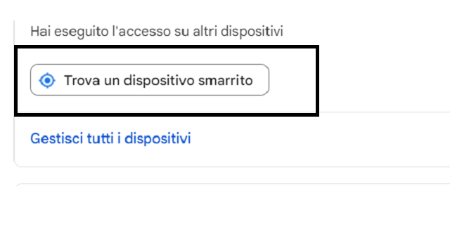 Nella sezione gestioni dispositivi è anche possibile selezionare “trova un dispositivo smarrito”, questa opzione permette di selezionare un dispositivo e procedere con le opzioni disponibili. Nello specifico selezionando il dispositivo e possibile procedere con, “Trova e blocca dispositivo”, “Provare a chiamare il telefono “in caso di smartphone, “Esci dall’account” “Contatta il tuo operatore” in caso di smartphone. In questo modo è possibile gestire un dispositivo collegato al proprio Account Google perso o smarrito.