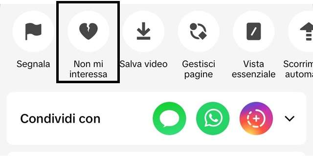 - Selezionare “Non interessato” sui video TikTok che non piacciono o non interessano;