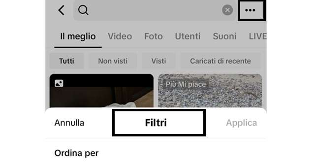 - Scegliere “Filtri” e selezionare quelli inerenti a ciò che si sta cercando.