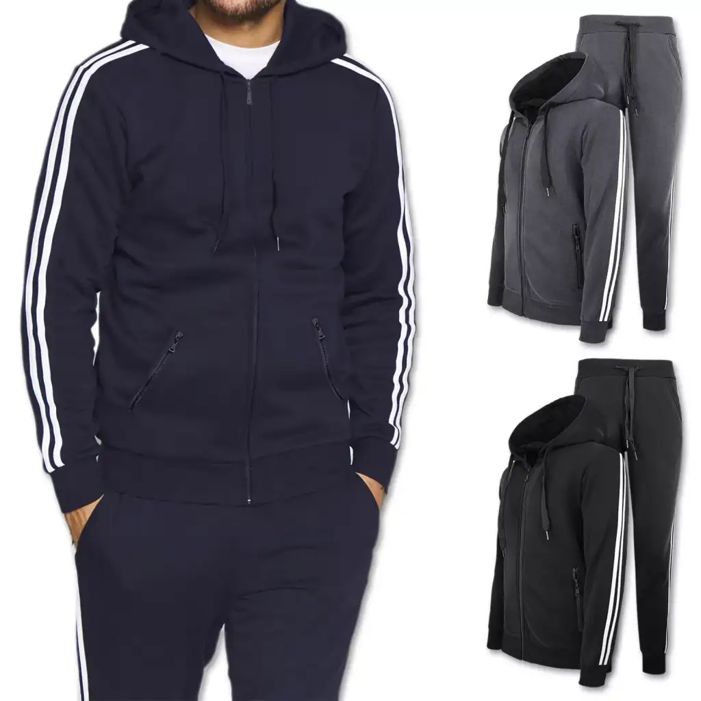 La tuta presenta un design moderno, con bande laterali per un tocco dinamico. La felpa con cappuccio è perfetta per la stagione autunnale e invernale, così come il pantalone che completa il look grazie al suo stile sobrio.