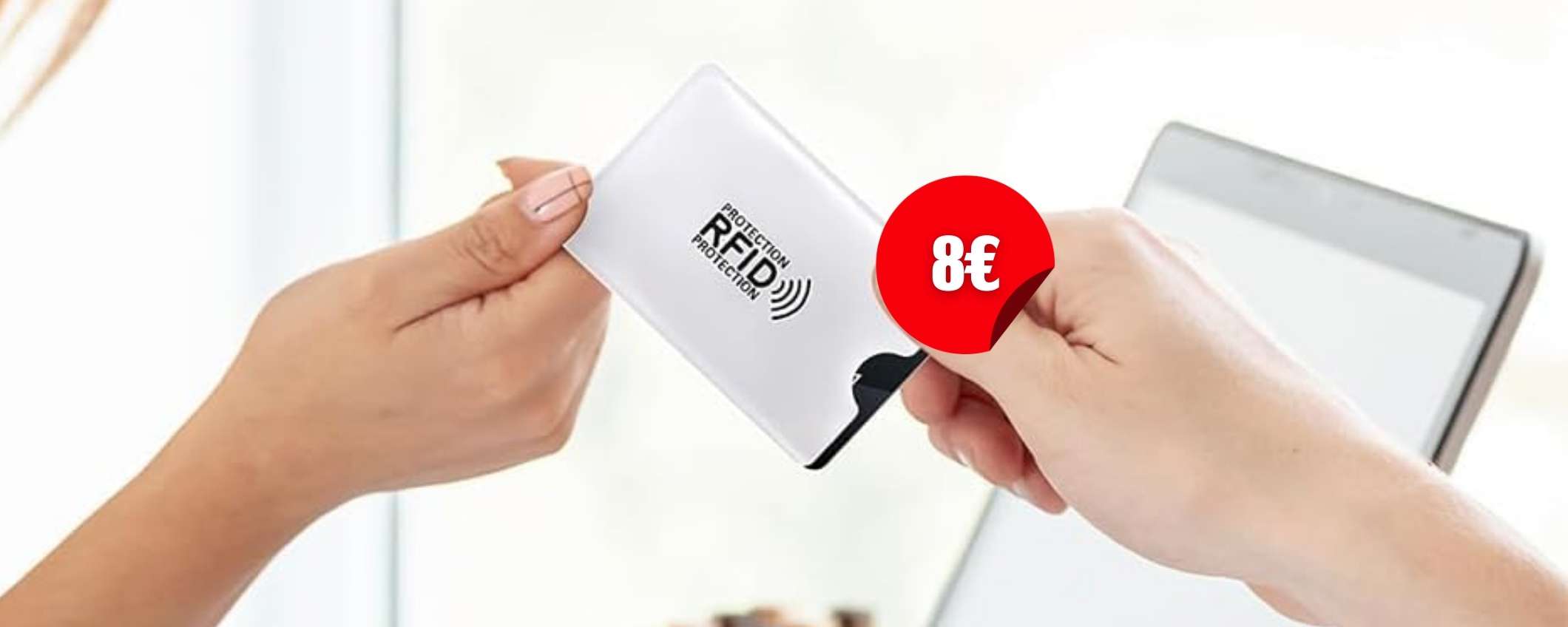 Sono sufficienti pochi euro per salvarne molti di più. Ormai cadere nelle truffe è diventato più semplice e bisogna tutelarsi non solo dietro lo schermo, ma anche nella vita reale. I metodi di pagamento contacless? Comodissimi, ma un’arma a doppio taglio. Per evitare brutte sorprese, rendi le tue carte di pagamento più sicure che mai con degli accessori creati ad hoc: sono delle custodie con blocco RFID integrato. Costano appena 8,39€ su Amazon e sono ben 5 per poterle usare o condividere con partner, amici e famiglia. Non perdere tempoe aggiungile al carrello subito.