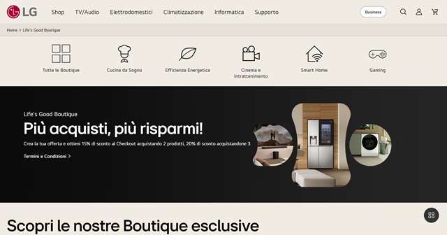 LG, promo Life’s Good Boutique: crea la tua offerta e ottieni fino al 20% di sconto a carrello