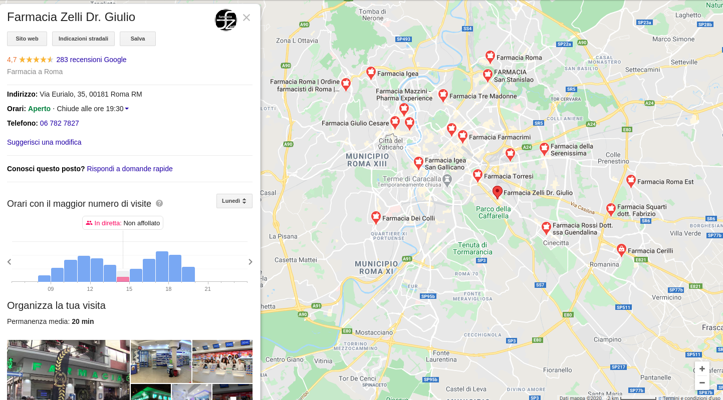 Lo stesso discorso vale nel caso in cui si stia cercando una farmacia, o un altra tipologia di negozi. Anche qualora la ricerca venga effettuata direttamente su Google Maps. Probabilmente Google si basa sui dati di geolocalizzazione che riceve dagli smartphone delle persone che si trovano i prossimità dei negozi.