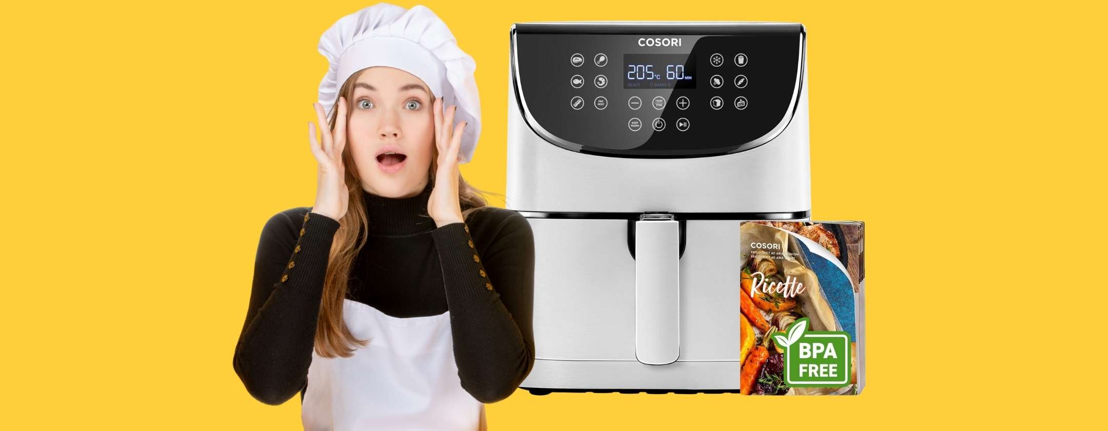 Se ami cucinare e spesso hai anche ospiti a casa non perdere questa promozione eccezionale che trovi solo su Amazon. Se fai in fretta puoi mettere nel tuo carrello la friggitrice ad aria COSORI da 5,5 litri a soli 84,99 euro, invece che 139,99 euro.