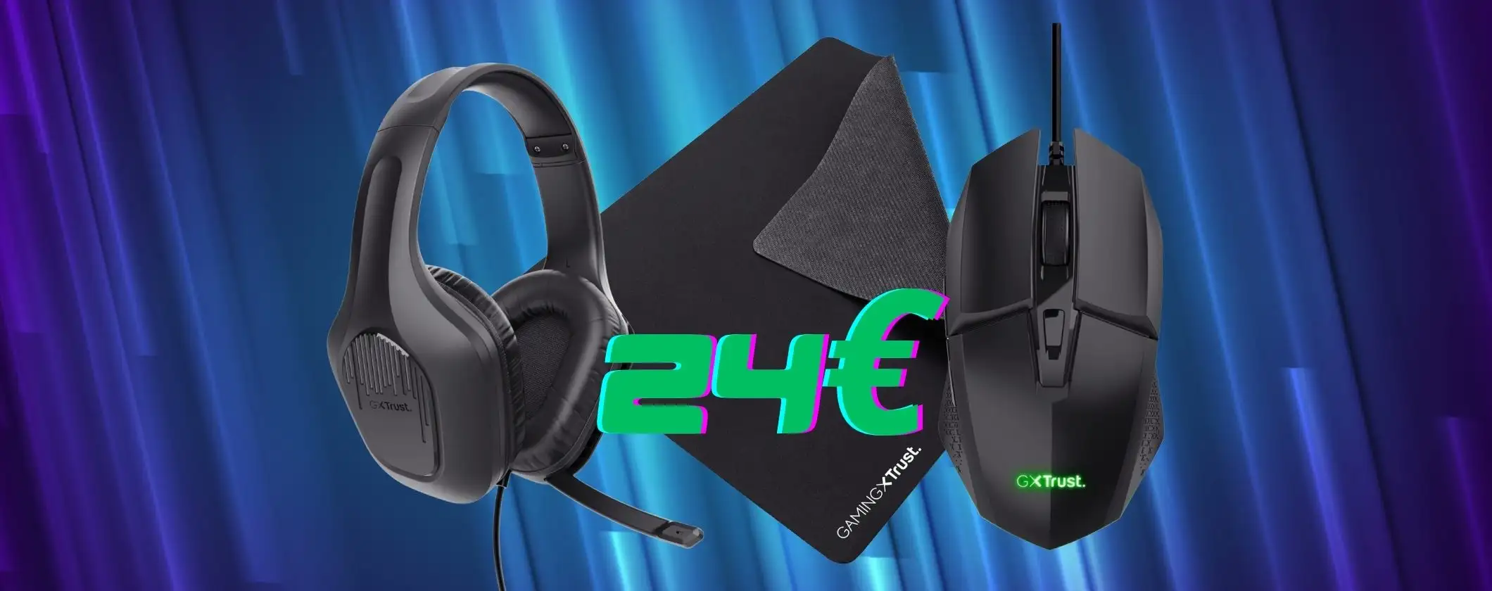 Se devi cambiare la tua postazione al PC acquistando diversi dispositivi per il gaming dai un’occhiata a questo fantastico bundle e fai il colpaccio. Se vai subito su Amazon puoi mettere nel tuo carrello le cuffie con microfono, ilmousee iltappetino Trust Gaming a soli 24,99 euro, invece che 34,99 euro.