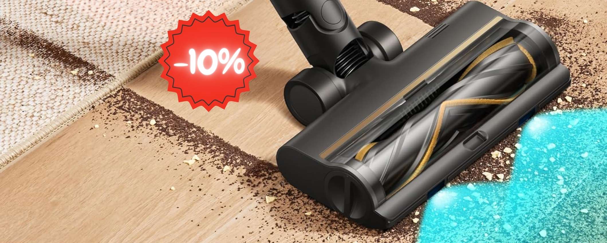 Per semplificare le tue pulizie quotidiane, usa DREAME R20 SE-A come aspirapolvere senza fili. Compra questo modello con lo sconto del 10% su Amazon e mettila subito in carrello a 179€ prima che torni a prezzo pieno.
