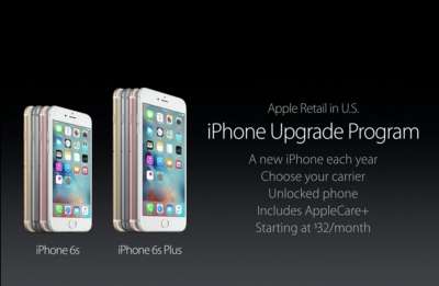 Presentando i prezzi è stata introdotta una nuova formula di acquisto negli USA (prossimamente negli altri paesi): iPhone Upgrade Program, che permette di cambiare un iPhone all'anno. Sarà disponibile (ovviamente non ancora in Italia) a partire da settembre (stesso periodo, più o meno, del rilascio di iOS9).