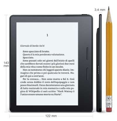 Il Kindle è il 20% più leggero rispetto agli altri Kindle in commercio e il 30% più sottile. Per una migliore impugnatura, uno dei due lati è più spesso dell'altro (i mancini potranno ruotare Kindle e schermo per impugnare ergonomicamente il dispositivo).