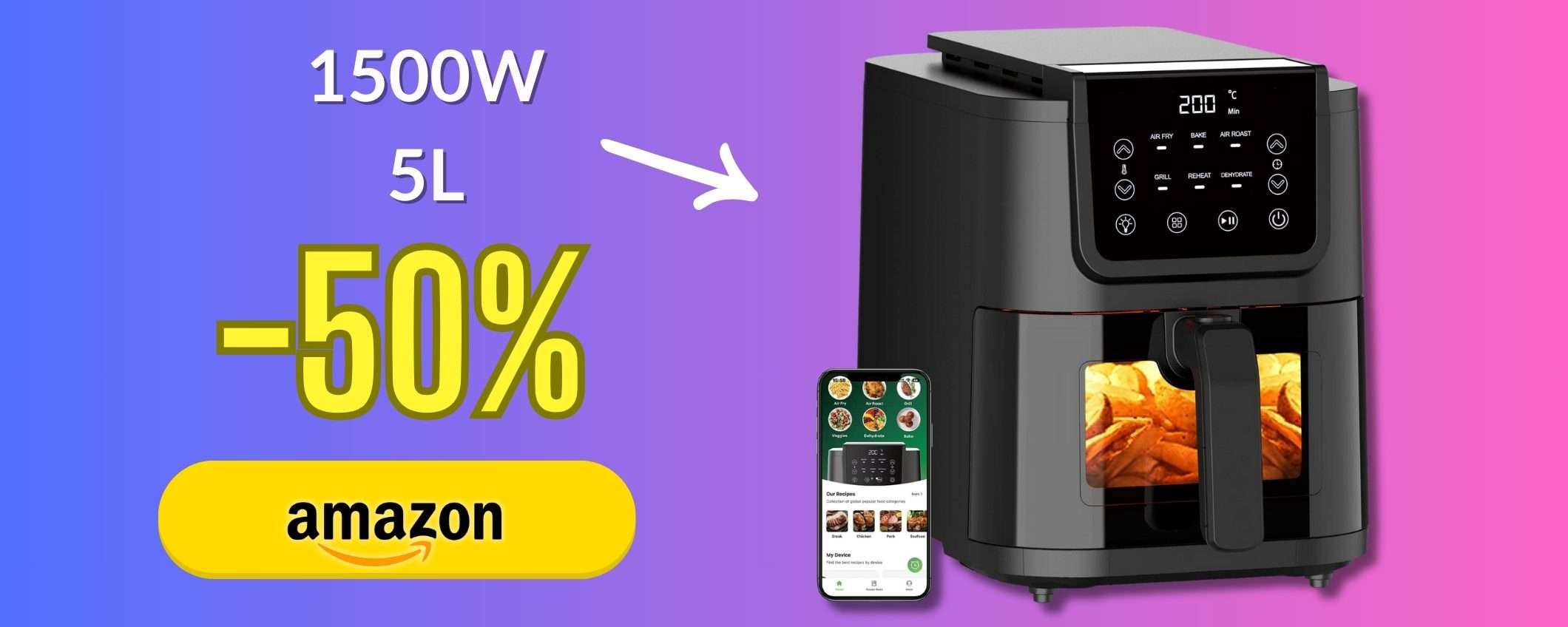 A soli 60€ su Amazon, la Friggitrice ad Aria di Chefree non è da farsela scappare. Approfitta immediatamente dello sconto del 50% per completare l’acquisto con un click.