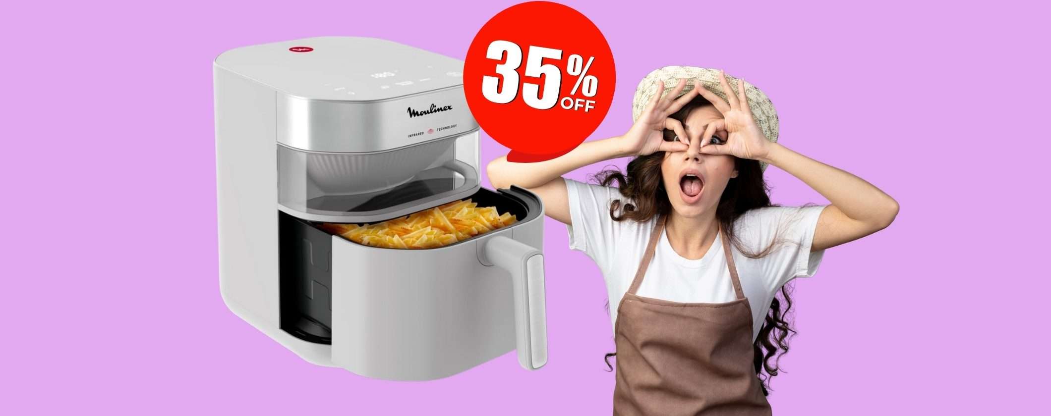 Se ami cucinare e stai cercando di acquistare qualcosa che ti permetta di essere più veloce, riuscendo comunque a mettere in tavola piatti buoni e meno calorici, dai un’occhiata a questa promozione. Vai subito su Amazon e metti nel tuo carrello la friggitrice ad aria Moulinex da 7 litri a soli 109,99 euro, invece che 169,99 euro.