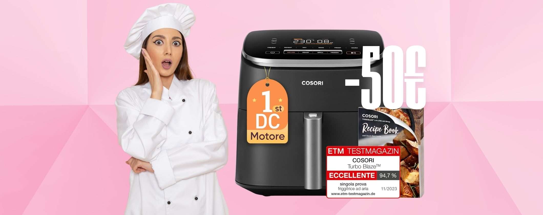 Questa è assolutamente una di quelle promozioni da non farsi sfuggire per nessun motivo al mondo per cui sii rapida. Vai immediatamente su Amazon e acquista la tua friggitrice ad aria COSORI da 6 litri a soli 119,99 euro, anziché 169,99 euro. Se concludi l’ordine ora la riceverai a casa tua domani senza costi in aggiunta, grazie ai servizi Prime. Se non sei ancora abbonata fallo adesso cliccando qui.