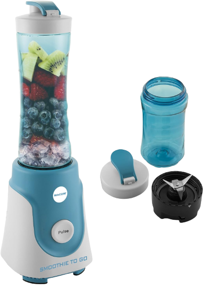 Smoothie To Go è il nuovo frullatore ad impulsi del marchio Macom che si distingue per la sua semplicità d’utilizzo. Versi gli ingredienti al suo interno, avvii il frullatore, sviti il bicchiere, lo chiudi e infine lo porti via.
