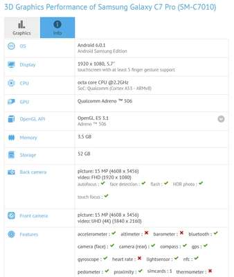 Continua il "tour" dei test del Samsung Galaxy C7 Pro: dopo essere passato per Geekbench e per AnTuTu arriva ora l’esito del benchmark effettuato su GFXBench.