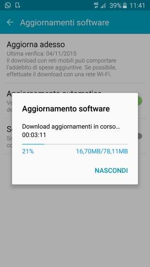 L'aggiornamento ha iniziato ad essere distribuito sui Galaxy S6 (modello SM-G920F) brandizzati TIM, Wind e Vodafone già dall'inizio di questo mese. Il peso di appena 80MB lasciava già presagire che non si sarebbe trattato nè di Android Marshmallow nè di un major update di Android, e in effetti si conferma come update minore legato al produttore che integra una nuova funzionalità nella sezione Batteria presente nel menu Impostazioni.