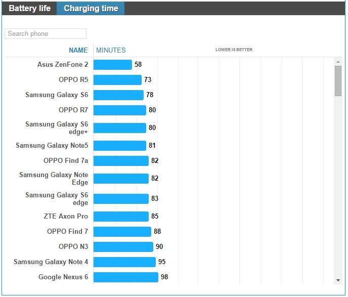 Circa i tempi di ricarica, il Galaxy S6 Edge+ conferma il dato ottenuto dal Galaxy Note 5: 80 minuti per portare la carica da zero al massimo, ovvero un solo minuto in meno. In questo caso la differenza ricade nel margine di possibile errore del test.