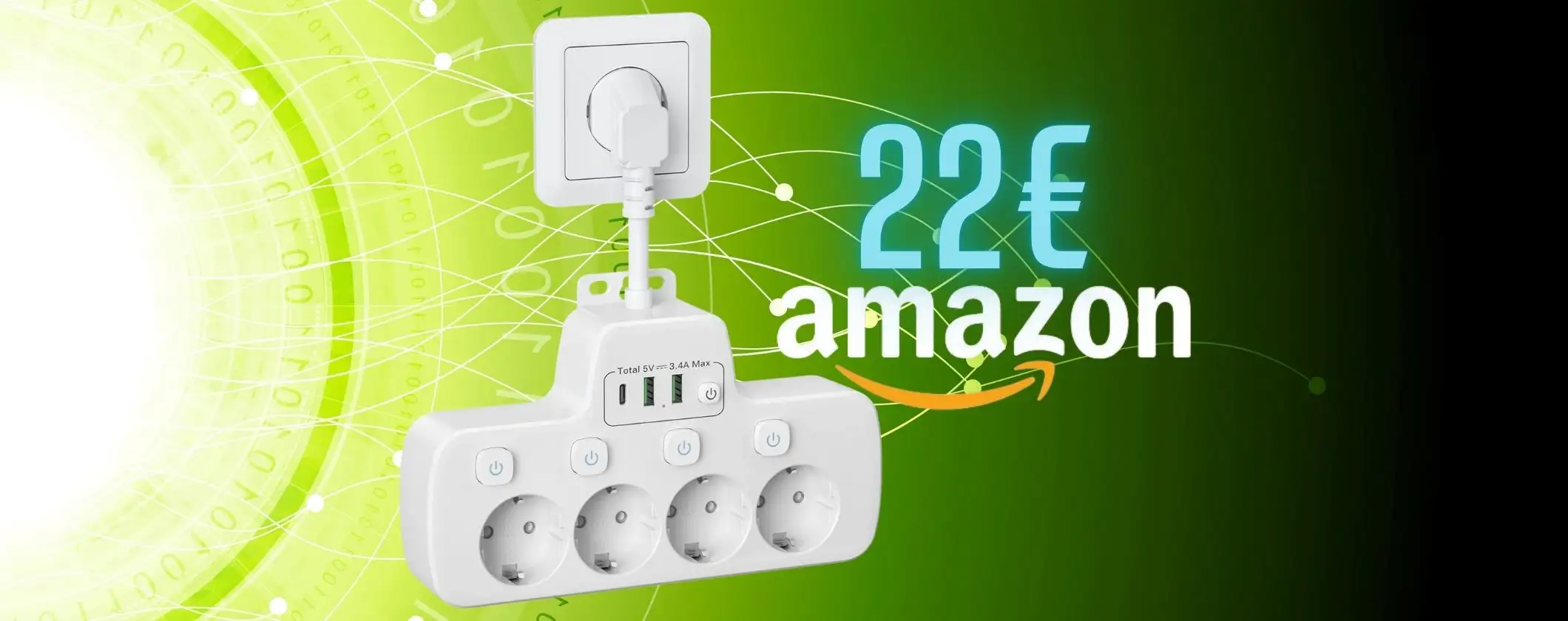 È vero che lo sconto del 5% non è certo da strapparsi i capelli ma il prezzo finale è davvero eccellente. Soprattutto potrai avere una straordinaria multipresa con interruttori indipendenti che occupa pochissimo spazio e ti permette di avere tutto ciò che ti serve in un unico posto. Tieni presente però che l’offerta è a tempo e quindi potrebbe scadere da un momento all’altro.