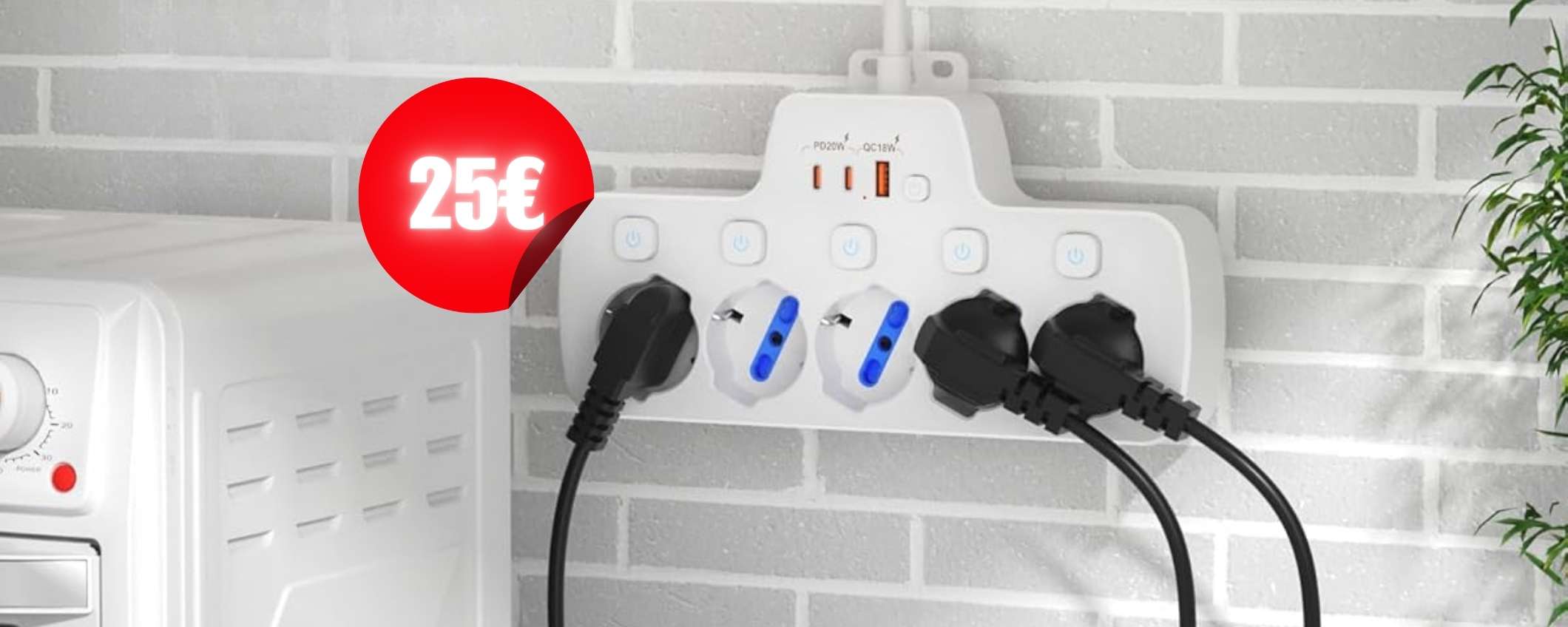 Completa subito l’acquisto su Amazon e compra la tua multipresa salvaspazio in sconto del 15%. Mettila in carrello con soli 25,64€ ora.