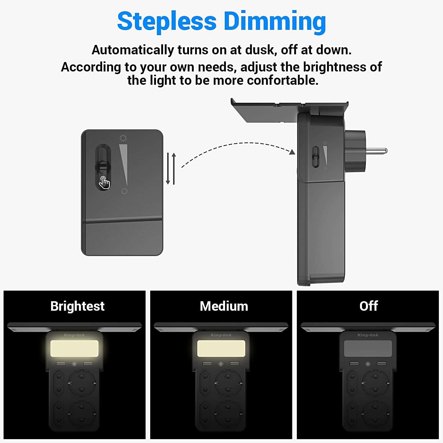 Possiede due prese il schuko, due prese classiche e due porte USB. Inoltre ha una pratica luce LED che ti permette di vedere perfettamente anche quando è buio. E potrai regolare quest’ultima scegliendo tra 3 modalità. Per garantire poi la massima sicurezza è dotata di una protezione da cortocircuito ed è resistente alle alte temperature.