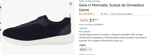 Approfitta degli sconti Geox su Amazon e prendi le calzature che ti piacciono di più a partire da 31€ circa appena. Gli sconti arrivano fino al 66%, ma dovrai fare in fretta: le scorte sono in rapido esaurimento!