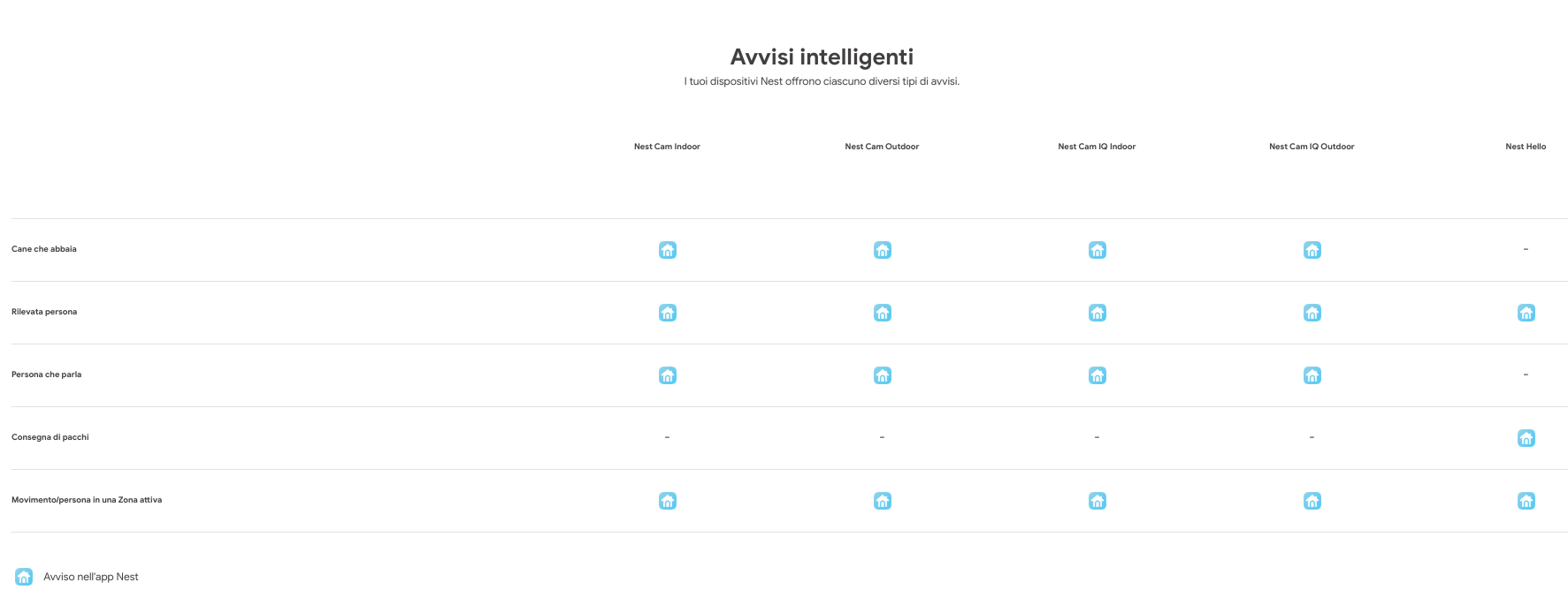 | Nest Aware (seconda generazione) | Comprende tutte le videocamere di casa propria |