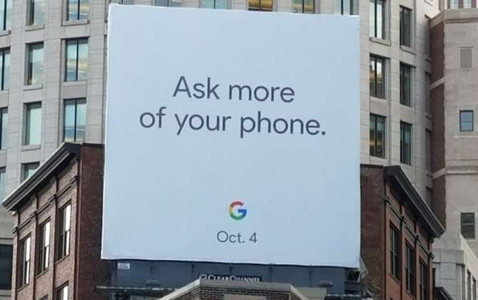 Un cartellone pubblicitario a Boston potrebbe svelare qualche informazione relativa alla data di lancio dei prossimi Google Pixel 2. "Chiedi di più al tuo telefono", dice la frase in nero sullo sfondo bianco del cartellone pubblicitario. Sotto questa frase c’è il logo multicolore di Google seguito dalla data del 4 ottobre. Gli indizi puntano ovviamente alla presentazione di Pixel 2 e Pixel XL 2, che dovrebbero essere prodotti da HTC.