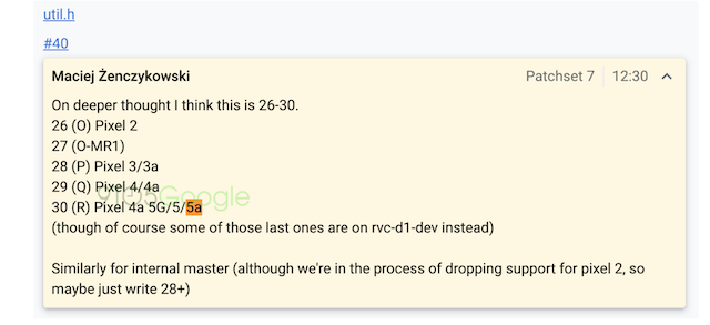 Oggi, abbiamo nuove prove concrete che la casa di Mountain View stia effettivamente lavorando su un dispositivo di fascia media per il 2021. Quest’ultime derivano direttamente da una modifica del codice nel Progetto Open Source Android, in cui uno sviluppatore ha fatto espressamente riferimento all’intera gamma di device della famiglia Google Pixel e con quale versione di Android è stata lanciata o verrà lanciata.