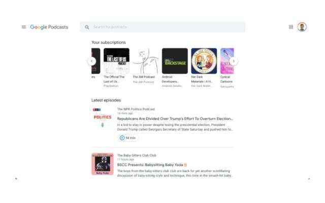 Sul sito Web di Google Podcast, nella parte alta della pagina, ora c’è un carosello a scorrimento orizzontale dei propri programmi preferiti. Al di sotto di questo, la pagina “Iscrizioni” ora mostra un elenco degli episodi più recenti degli show a cui si è iscritti, a partire dall’ultimo. Il tempo di pubblicazione viene visualizzato insieme all’artwork e al titolo e alla descrizione dell’episodio.