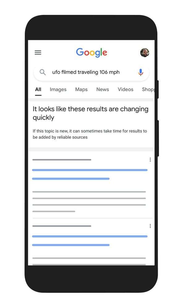 “Per supportarvi anche in questa situazione, abbiamo addestrato i nostri sistemi per riconoscere quando un argomento si sta diffondendo rapidamente ed alcune fonti non sono state ancora prese in considerazione. In tal caso, ti mostreremo immediatamente un avviso in Google Search, suggerendo di effettuare un controllo più tardi quando saranno disponibili ulteriori informazioni”.