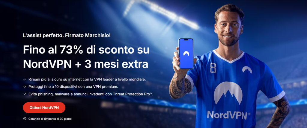 Tutto questo navigando senza tracciamenti e mantenendo i tuoi dati al sicuro grazie alla crittografia avanzata di NordVPN. Insomma, non solo un servizio di protezione personale, ma anche la porta di accesso a un mondo di intrattenimento: puoi averlo adesso con il 73% di sconto e 3 mesi gratis con garanzia di rimborso entro 30 giorni.
