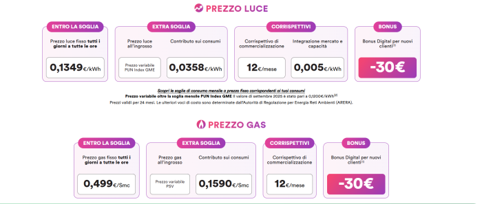 - Bonus Digital per i nuovi clienti: 30 euro.