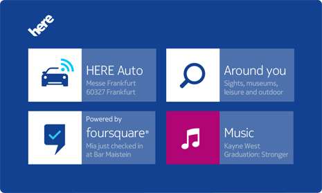 HERE Auto è la prima esperienza di navigazione in-car integrata in grado di fornire la mappa giusta al momento giusto, anche in assenza di connessione dati. Gli automobilisti possono contare su un navigatore con guida vocale "turn-by-turn" in 95 paesi e mappe in 2D, 3D e satellitari, incluse le immagini a livello stradale. In futuro i produttori di automobili potranno arricchire facilmente l'esperienza HERE Auto grazie ad un software development kit (SDK) e creare così contenuti di intrattenimento e altre applicazioni dedicate, ad esempio, alla musica o ai social network. HERE Auto è già integrato nella Piattaforma di Open Infotainment di prossima generazione. HERE sta attualmente collaborando con partner come Magneti Marelli e altri per introdurre HERE Auto sul mercato nei prossimi mesi.