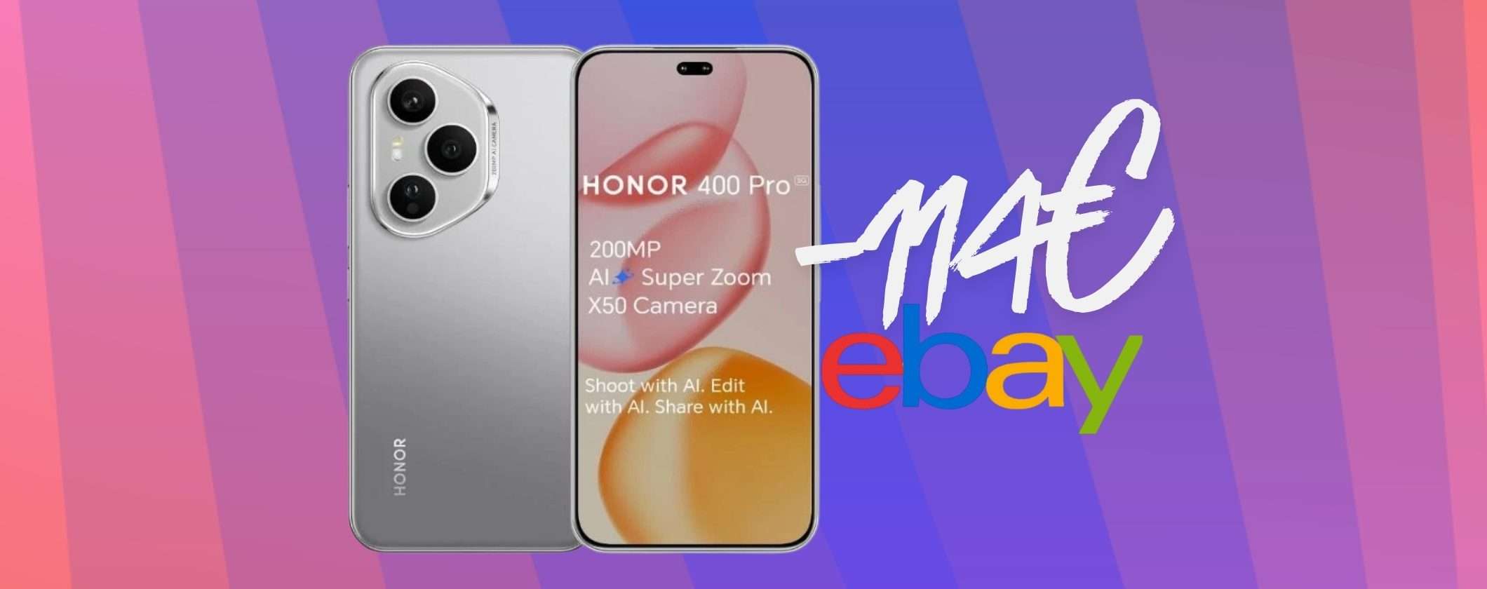 Se sei rapido oggi puoi mettere le mani su uno smartphone straordinario con fotocamera eccezionale e ricarica della batteria velocissima a un ottimo prezzo. Stiamo parlando del mitico HONOR 400 Pro 5G che, nella versione da 512 GB, puoi acquistare a soli 485,83 euro su eBay, inserendo il codice promozionale PSPRMAR26 al momento del pagamento.