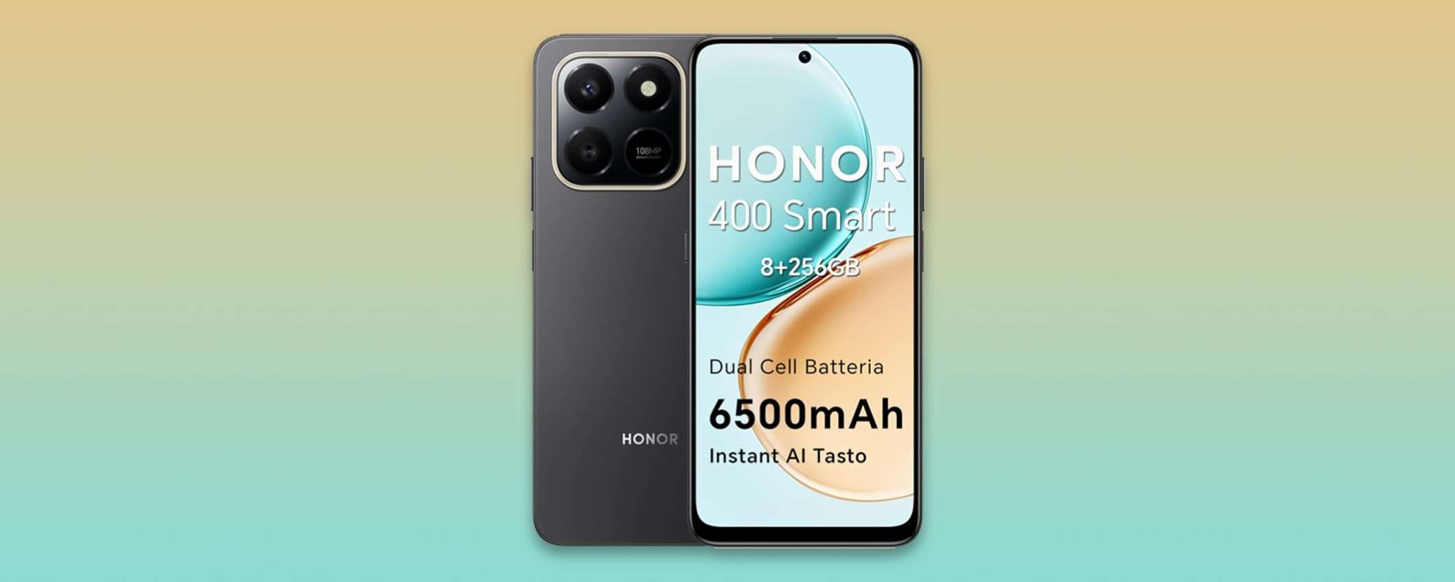 Tra gli elementi più interessanti c’è il comparto fotografico: Honor 400 Smart integra una fotocamera AI ultra nitida da 108 MP che scatta immagini ad alta risoluzione. Grazie all’ottimizzazione dell’intelligenza artificiale, il sensore permette di registrare immagini con milioni di dettagli.