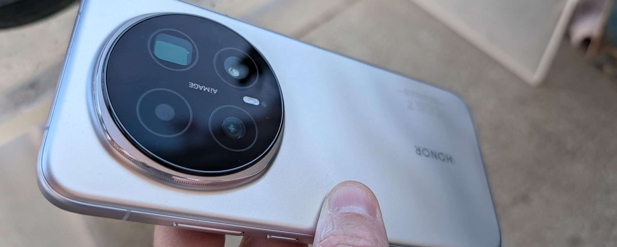 Il modulo fotografico posteriore è prominente, ma la sua forma circolare è stata studiata per fornire un supporto naturale alle dita durante l’uso prolungato, migliorando la stabilità dell’impugnatura. Forse il blocco delle fotocamere è l’aspetto che ci ha convinto di meno di questo smartphone perché non è sufficientemente distintivo rispetto alla concorrenza, avremmo preferito una soluzione più audace e riconoscibile rispetto ai competitor. Un dettaglio tecnico di rilievo è la presenza del riconoscimento facciale 3D, integrato nel ritaglio a forma di pillola sul display. Honor rimane attualmente l’unico produttore nel panorama Android a offrire questa tecnologia di sblocco sicura al pari degli iPhone, garantendo una protezione superiore per i dati biometrici e i pagamenti. Inoltre, il sensore di impronte digitali ultrasonico sotto lo schermo è posizionato strategicamente a metà altezza, risultando facile da raggiungere anche per chi ha mani piccole.