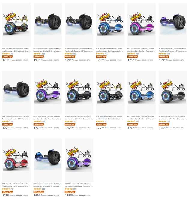 Sono ben 15 gli hoverboard in sconto, con prezzi compresi tra 175 e 199 euro e sconti che vanno dal 16 al 20%: