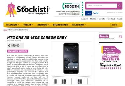 HTC One A9 è uno degli ultimi top di gamma della casa taiwanese, oggetto di diverse critiche per la somiglianza estetica con iPhone ma con una dotazione hardware di alto livello e materiali all’altezza degli altri dispositivi HTC. Le versioniOpal SIlvereCarbon Grey, ciascuna con taglio da 16GB, sono state messe in vendita sul sito de Gli Stockisti all'interessante prezzo di 459€ spedizione inclusa, quasi 100€ in meno rispetto al prezzosegnato su Amazon.