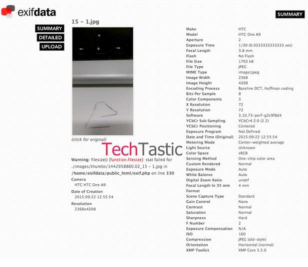 La scorsa settimana Evan Blass aveva rivelato in un tweet che HTC One A9 sarebbe stato un dispositivo di fascia media alimentato dal chipset Snapdragon 617. Che contraddiceva un precedente test di benchmark che aveva mostrato il device con un SoC MediaTek MT6797 sotto il cofano. Blass aveva rivelato che la fotocamera posteriore avrebbe avuto un sensore da 13 megapixel con OIS. Secondo i dati Exif, il sensore avrà un'apertura di f/2.0. La presentazione del device dovrebbe essere comunque imminente, perciò a breve ne sapremo di più. Stay tuned!