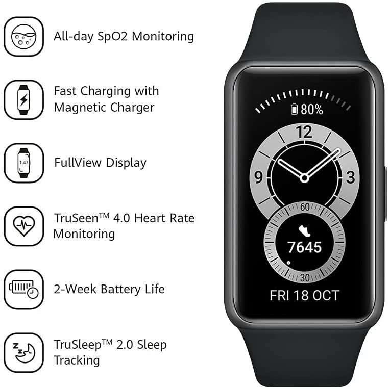Huawei Band 6, in questa fascia di prezzo, è una delle migliori proposte da valutare per tenere sempre sotto controllo la tua salute e monitorare i risultati dei tuoi allenamenti. L’offerta di oggi è relativa al modello in colorazione Graphite Black.