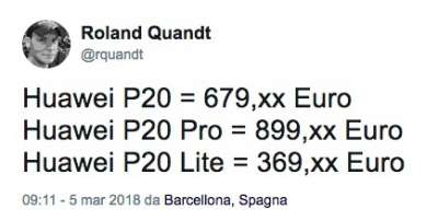 In attesa che i tre nuovi smartphone P20 (dal più potente a quello Lite) vengano svelati ufficialmente nella presentazione che la società cinese terrà a Parigi il 27 marzo, ecco spuntare sulla Rete i prezzi (presunti) di questo trio di device.