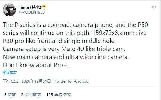 Infatti, il noto tipster @rodent950 ha dichiarato su Twitter che Huawei starebbe preparando una versione compatta con schermo da 6,2 pollici, un modello medio da 6,6 pollici e un terminale più grande da 6,8 pollici: ci aspettiamo che questi tre telefoni rispondano ai nomi di P50, P50 Pro e P50 Pro.